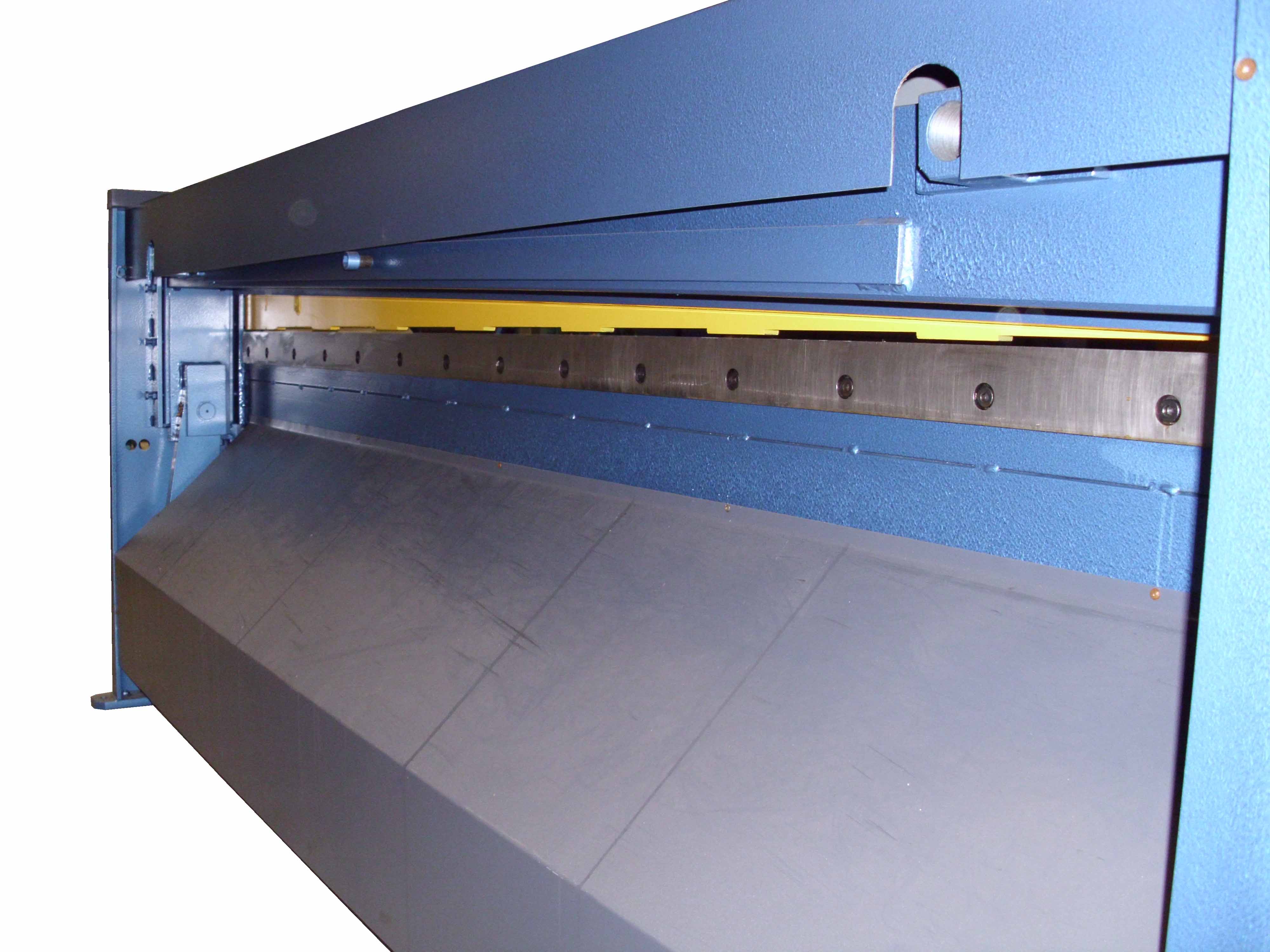 Elektromechanické padací nůžky mají pracovní délku 2000 mm a tloušťku stříhaného ocelového plechu 1,6 mm.