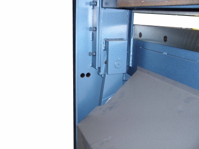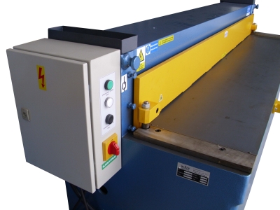Elektromechanické padací nůžky mají pracovní délku 2000 mm a tloušťku stříhaného ocelového plechu 1,6 mm.
