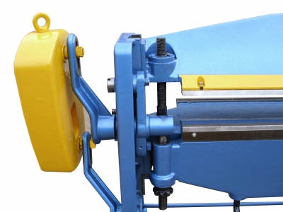 Elektromechanická litinová ohýbačka plechu - s možností vyměnitelných pravítek - s pracovní délkou 2000 mm a tloušťkou ohnutého plechu 2 mm.