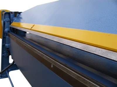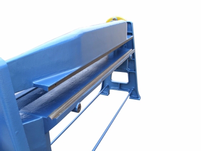 Ruční litinová ohýbačka plechu s možností vyměnitelných pravítek. Pracovní délka 2000 mm a tloušťka ohnutého plechu 2 mm.